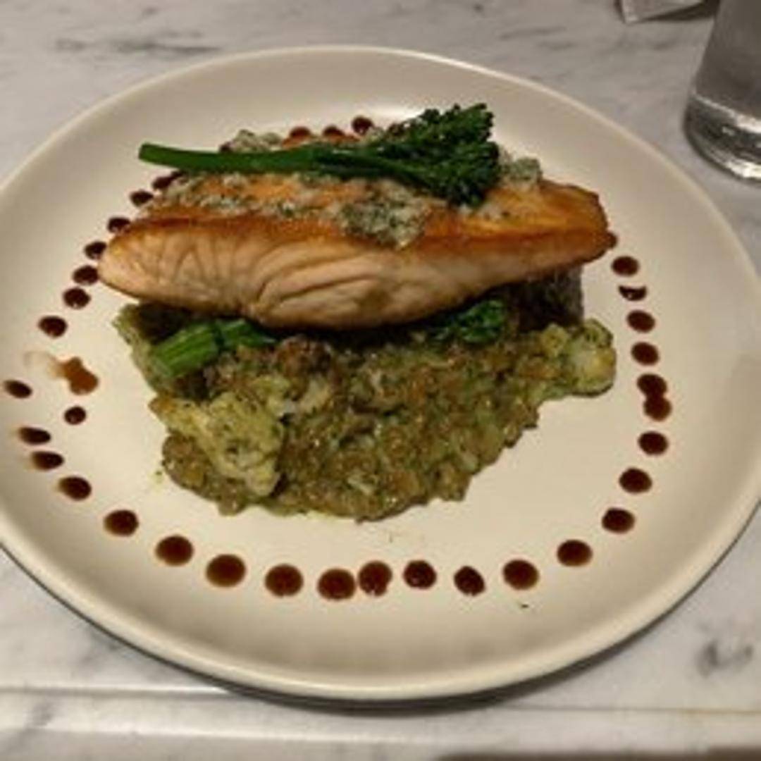 A perfectly prepared filet of Atlantic salmon, expertly roasted to achieve a moist, flaky interior and a subtly crisp exterior. This flavorful and healthful entree at North Italia is typically served with a thoughtful selection of seasonal accompaniments that enhance its natural richness and delicate taste.