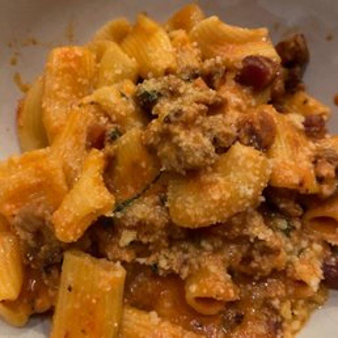 A classic pasta dish featuring al dente rigatoni enveloped in a creamy, vibrant tomato-vodka sauce, infused with just the right amount of chili flakes for a delightful spicy kick. This North Italia favorite offers a rich and comforting experience with a zesty finish.