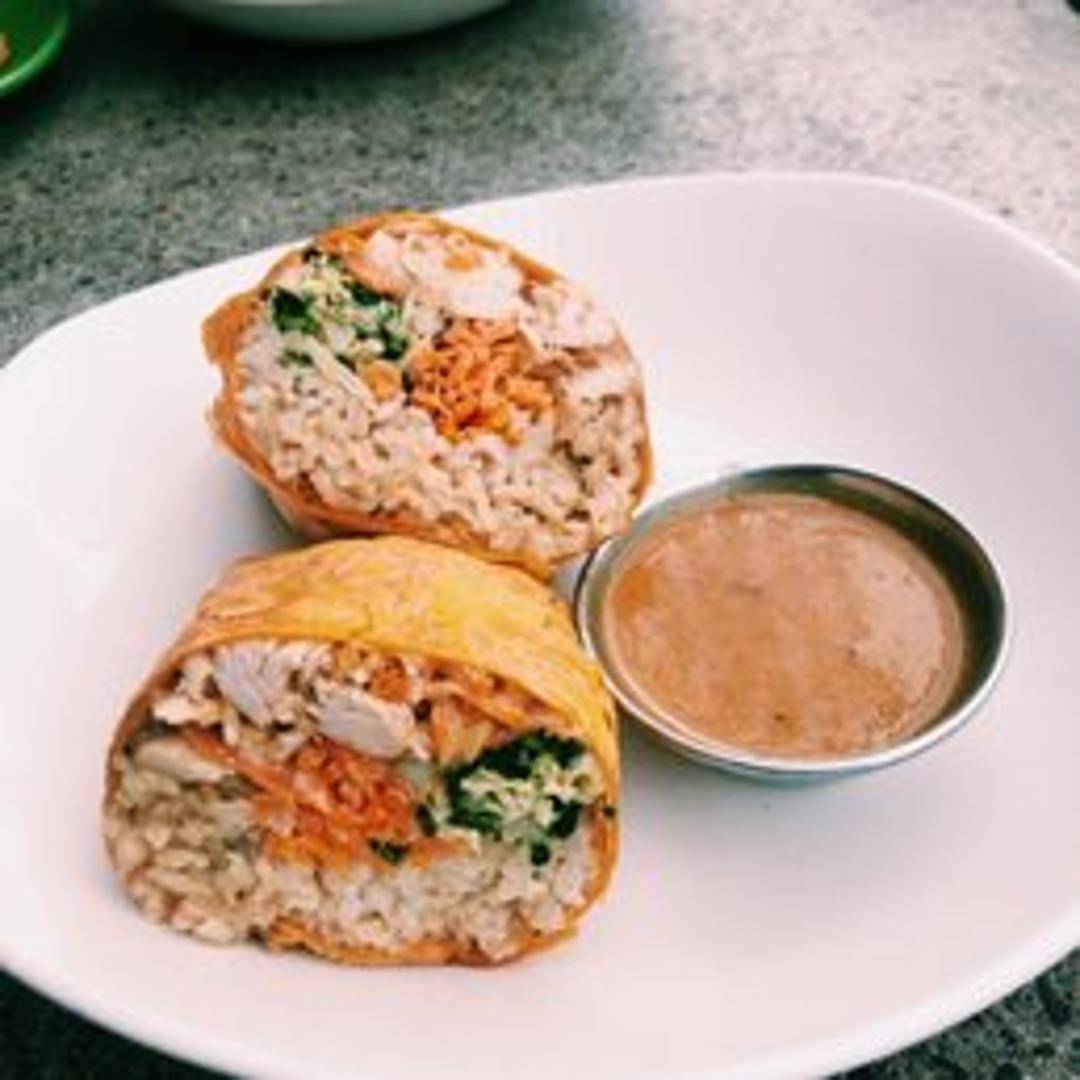 Experience a burst of vibrant flavors wrapped in a warm tortilla. Our Thai Burrito features a harmonious blend of brown rice, fresh crisp vegetables, cilantro, and your choice of organic tofu or roasted chicken, all generously drizzled with our house-made spicy peanut sauce. A delightful fusion that's both satisfying and refreshing.