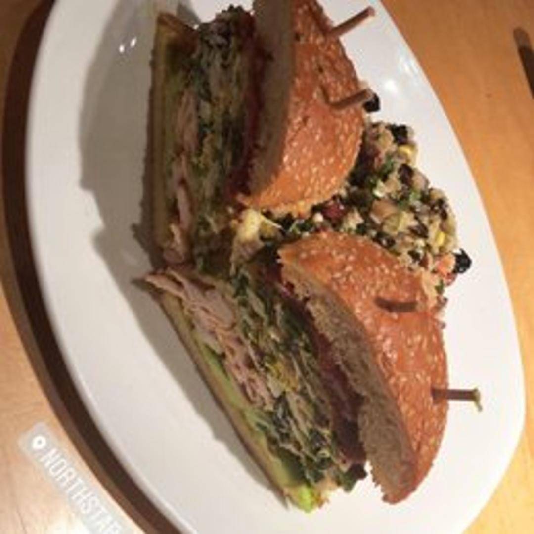 A fresh take on a classic, our Chicken Avocado Sandwich combines tender, grilled free-range chicken breast with creamy sliced avocado, crisp lettuce, ripe tomato, and a zesty herb aioli, all served on perfectly toasted artisan bread. A light yet fulfilling choice.