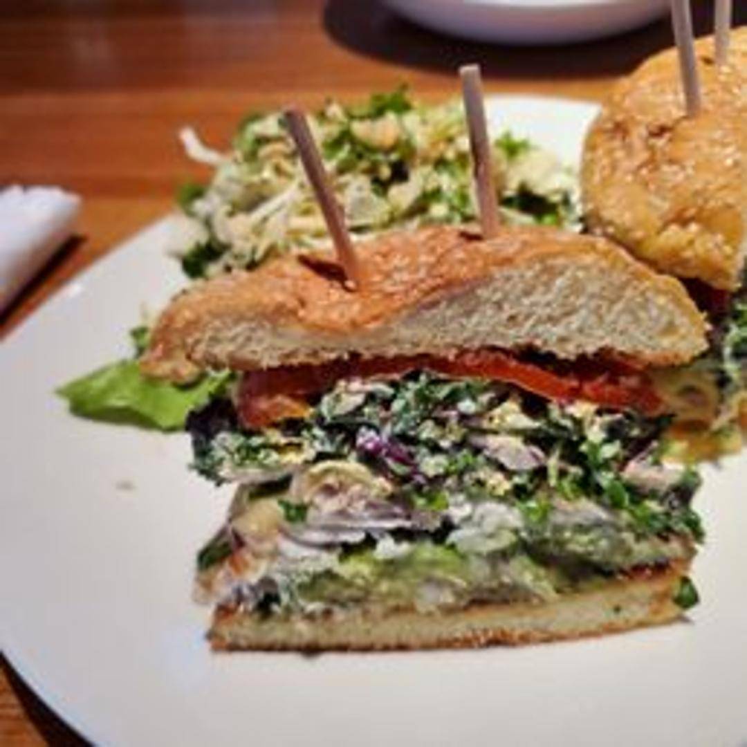 A crisp and savory sandwich featuring a generously sized fillet of lightly battered or pan-seared white fish, served on a toasted bun with fresh lettuce, tomato, and often a creamy tartar sauce or lemon aioli. A satisfying option with a delightful balance of textures and flavors.