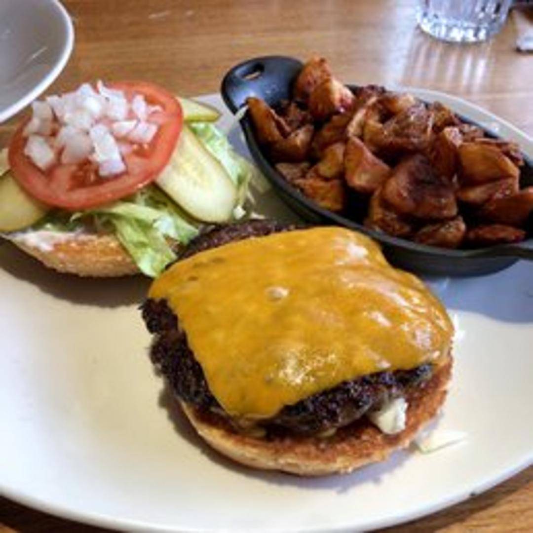 Our timeless and perfectly grilled beef patty, topped with a generous slice of melted cheddar or American cheese, crisp lettuce, ripe tomato, thinly sliced red onion, and tangy pickles, all served on a toasted brioche bun. A true American diner staple, cooked to perfection.