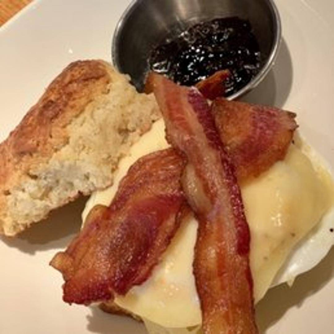A comforting and classic breakfast sandwich featuring perfectly cooked eggs, melted cheese, and a choice of protein (like bacon or sausage, if available) or fresh vegetables, all nestled between slices of artisanal bread or a toasted bun for a delicious start to your day.