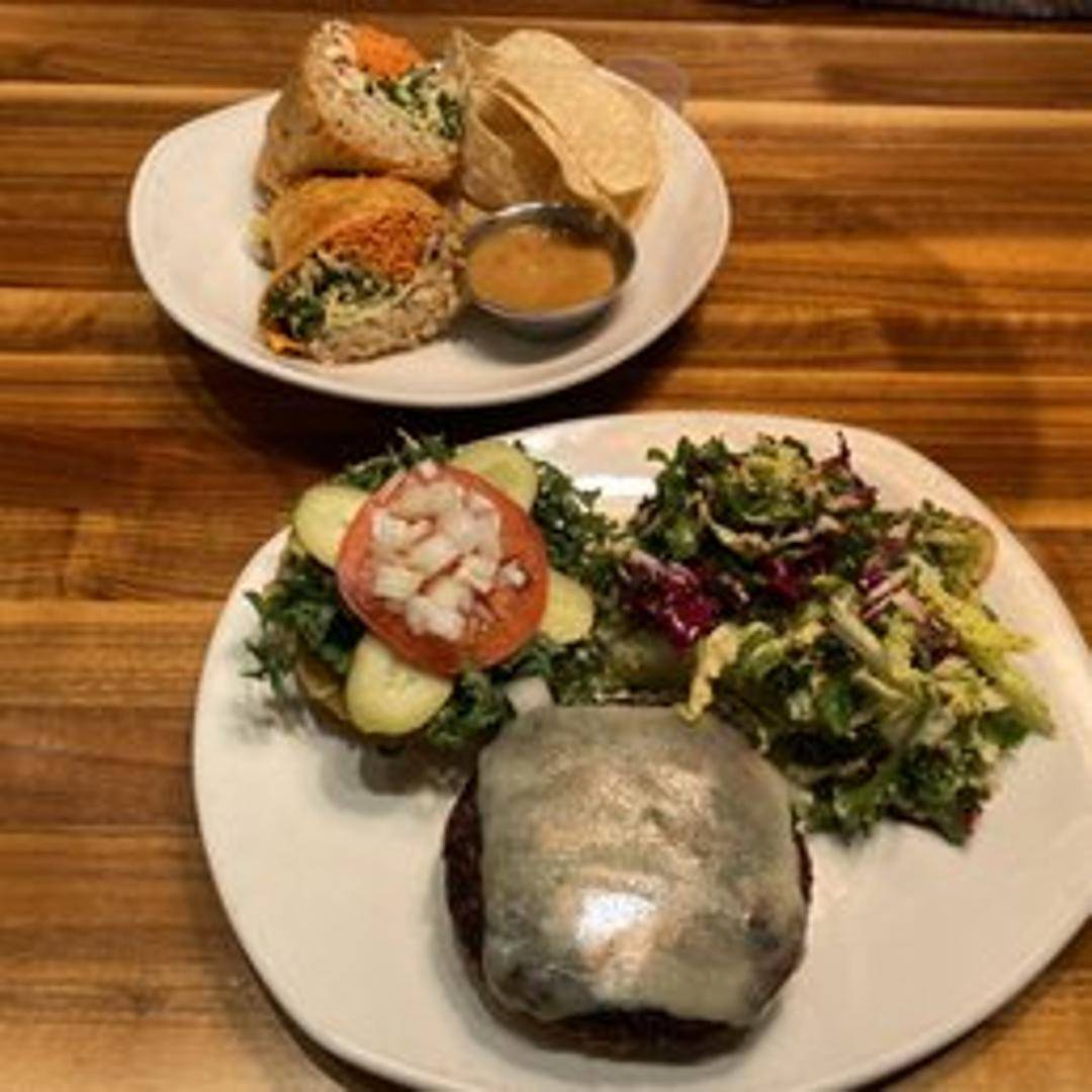 Our renowned signature vegetarian burger, crafted in-house from a thoughtful blend of black beans, brown rice, and earthy beets, expertly seasoned and pan-seared. Served on a brioche bun with crisp lettuce, ripe tomato, and a tangy pickle spear, offering a uniquely satisfying and flavorful experience.