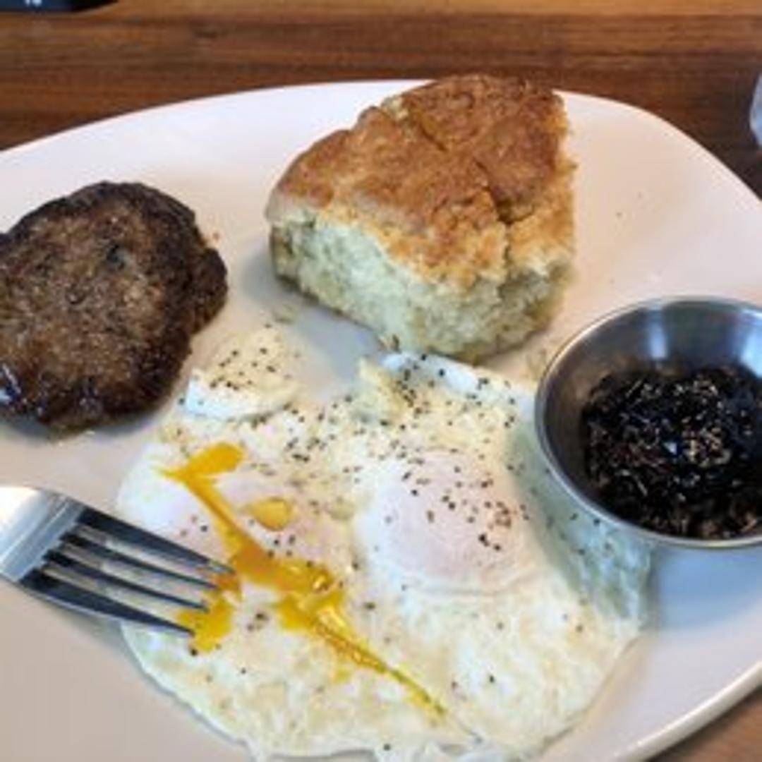 A hearty and robust breakfast designed to fuel your day. Enjoy two farm-fresh eggs cooked to your preference, served alongside crispy home fries, savory sausage links or smoky bacon, and your choice of toast or a warm biscuit.