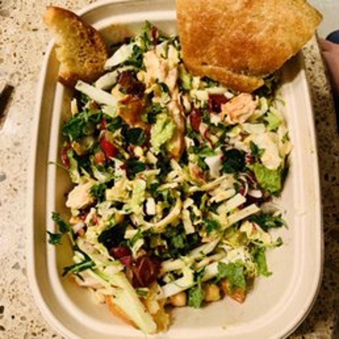 A vibrant and sophisticated salad crafted with a medley of fresh, crisp greens, often adorned with seasonal fruits, toasted nuts, crumbled artisan cheese, and your choice of grilled chicken, salmon, or tofu, all tossed in a light, house-made vinaigrette. A refreshing and complete meal that embodies elevated freshness.
