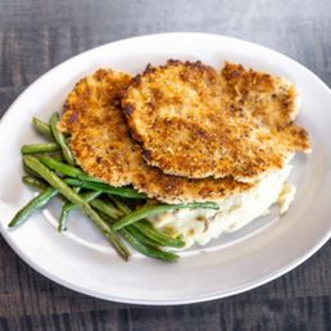 Pan-seared chicken breast coated in a tangy mustard crust. Served with seasonal vegetables and mashed potatoes.