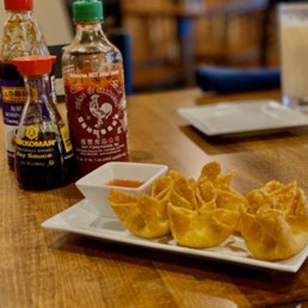 Crispy wonton wrappers filled with a creamy mixture of imitation crab meat, cream cheese, and seasonings, deep-fried to a golden brown. Served with a sweet dipping sauce.