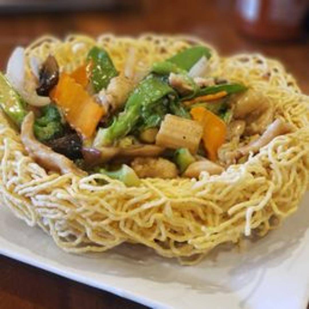Your choice of egg noodles or rice noodles served dry, topped with your choice of protein (options may include grilled pork, chicken, or tofu), bean sprouts, lettuce, pickled carrots and daikon, fried shallots, and a flavorful sauce.