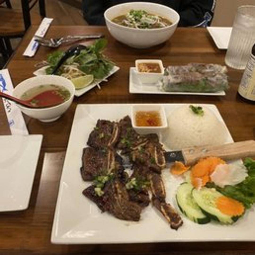 Tender and succulent short ribs marinated in a traditional Vietnamese sauce, slow-cooked to perfection. Expect a savory, slightly sweet, and richly flavored dish, often served with rice and pickled vegetables.