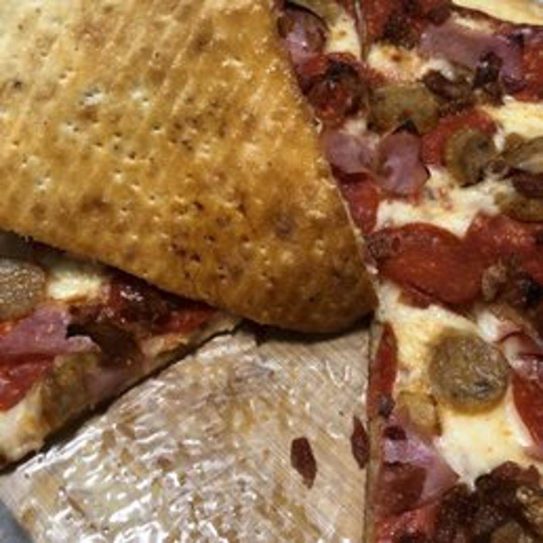 A New York style pizza featuring our signature crust, classic tomato sauce, mozzarella cheese, pepperoni, sausage, mushrooms, and onions.