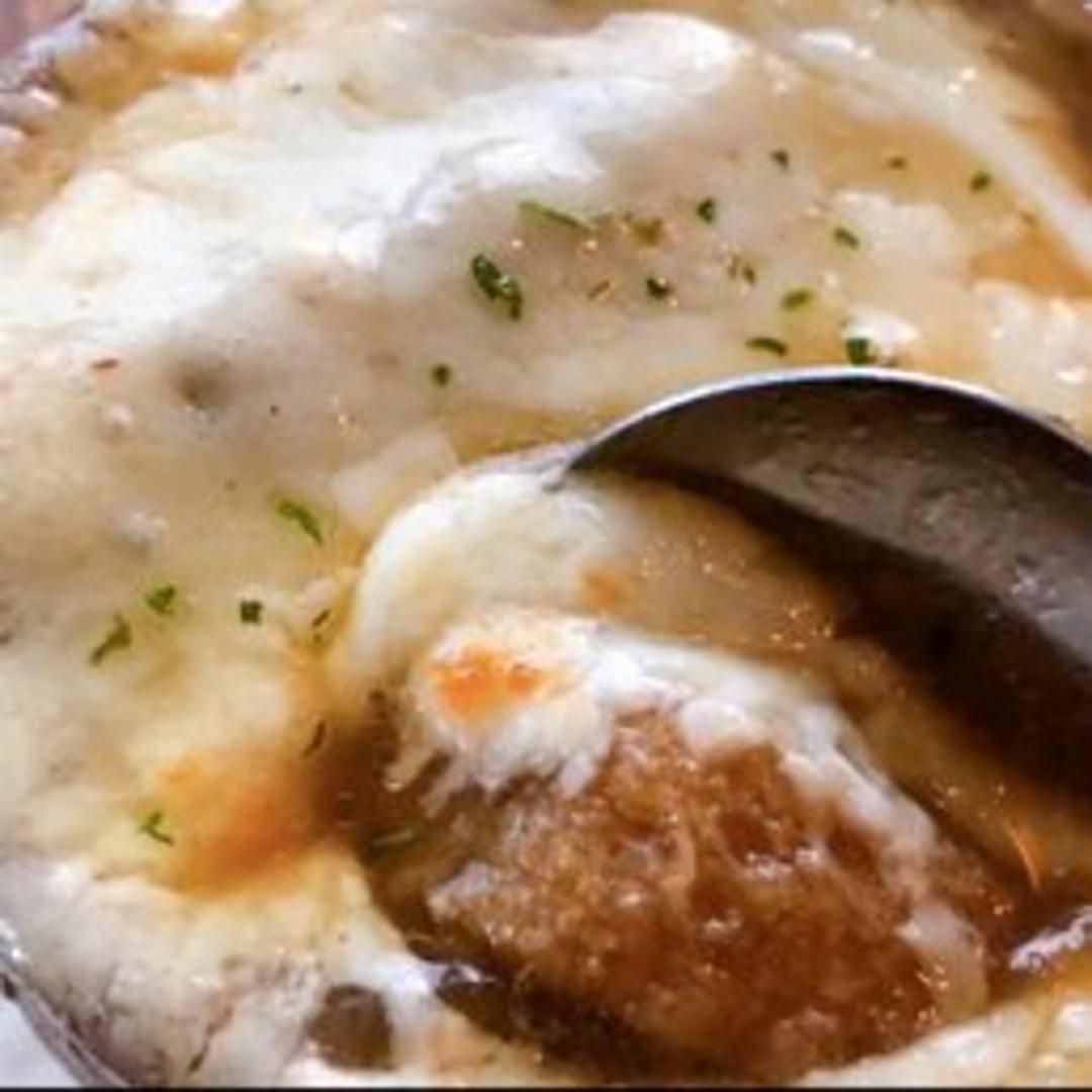 Classic French onion soup topped with a toasted crouton and melted Gruyere cheese. Rich beef broth with caramelized onions.