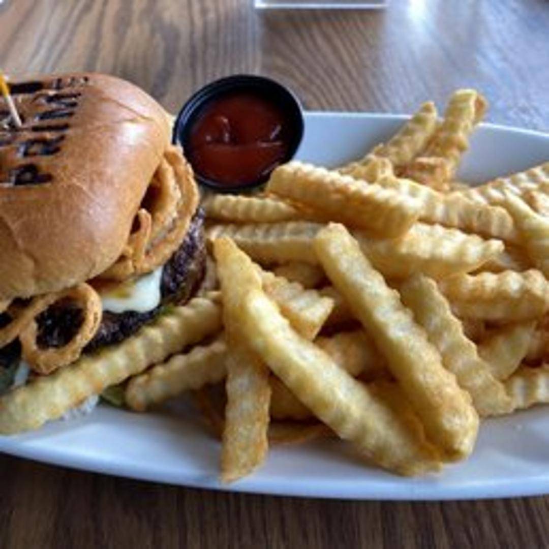 A premium beef patty glazed with a sweet and smoky bourbon BBQ sauce, topped with crispy fried onion strings and cheddar cheese on a toasted bun. Served with a side of fries or coleslaw.