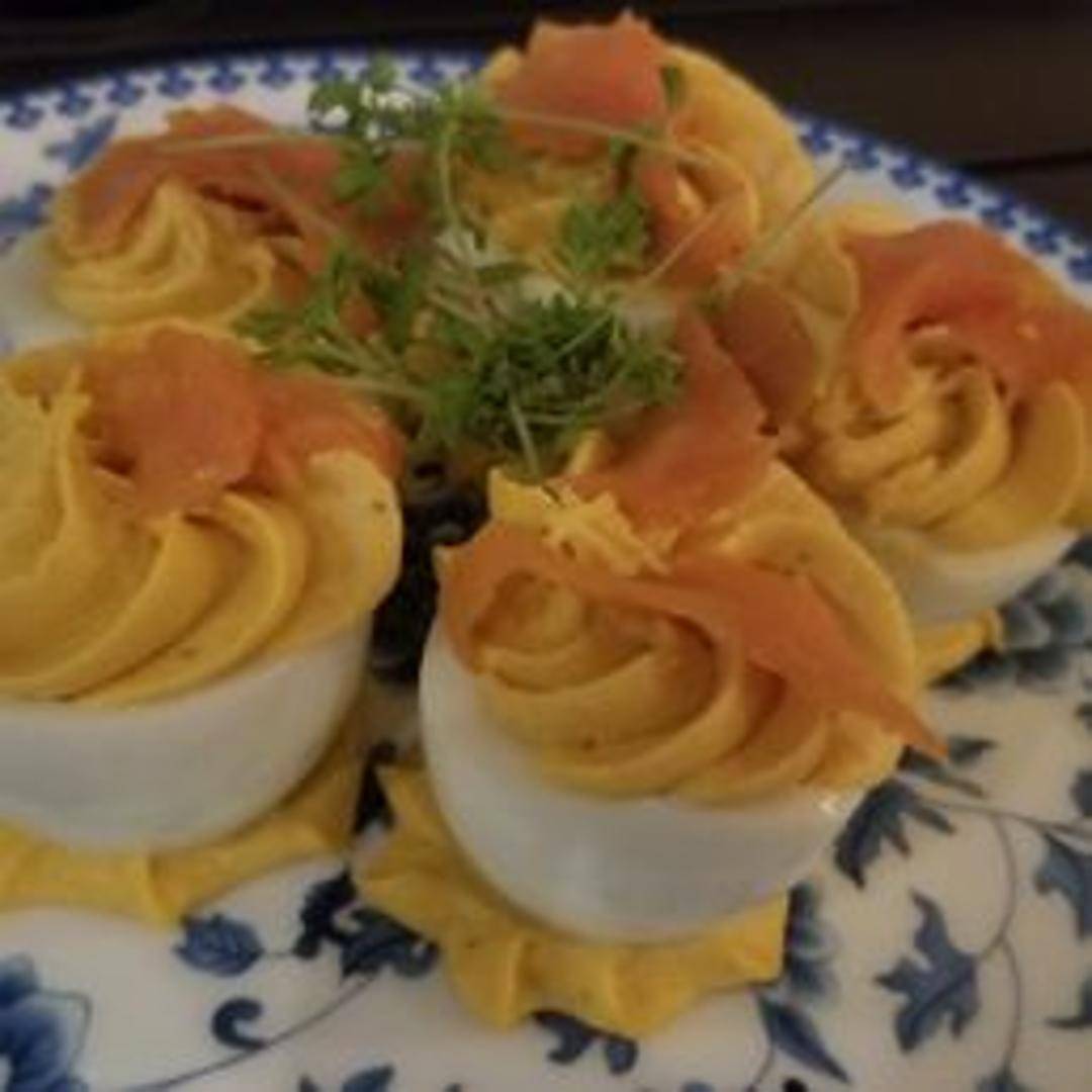 Classic deviled eggs made with creamy yolk filling, seasoned with traditional spices and herbs, and garnished for a visually appealing presentation. Prepared fresh daily by Oakleaf.