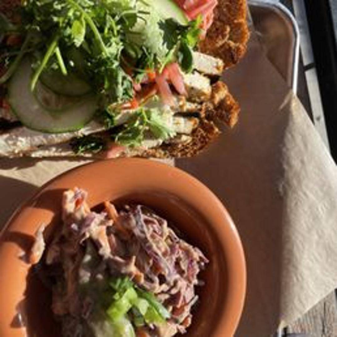 A traditional Vietnamese sandwich with your choice of protein (pork belly, grilled chicken, or tofu), pickled vegetables, cilantro, jalapenos, and a spicy mayo on a toasted baguette.