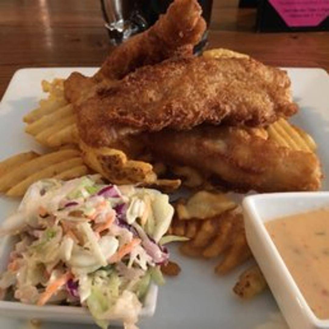 Beer-battered cod served with crispy french fries and tartar sauce.
