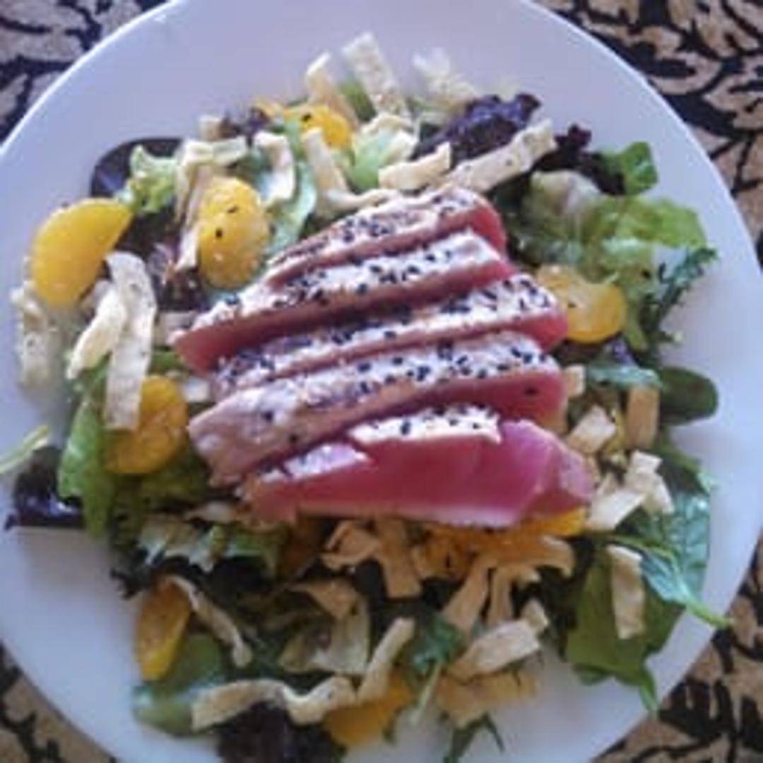 Freshly seared Ahi tuna served on a bed of mixed greens. Includes sliced avocado, cucumbers, tomatoes, red onion, and a light vinaigrette dressing.