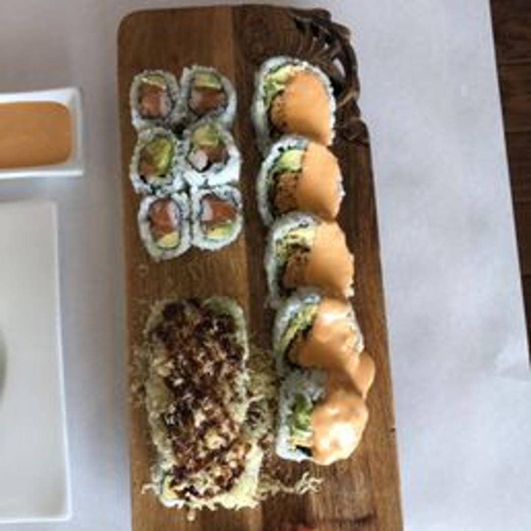 A substantial and satisfying choice, the Big Mouth Roll lives up to its name with a generous combination of ingredients. It boasts spicy tuna, fresh salmon, tender yellowtail, and creamy avocado, all topped with crunchy tempura flakes and a delectable sweet chili sauce.