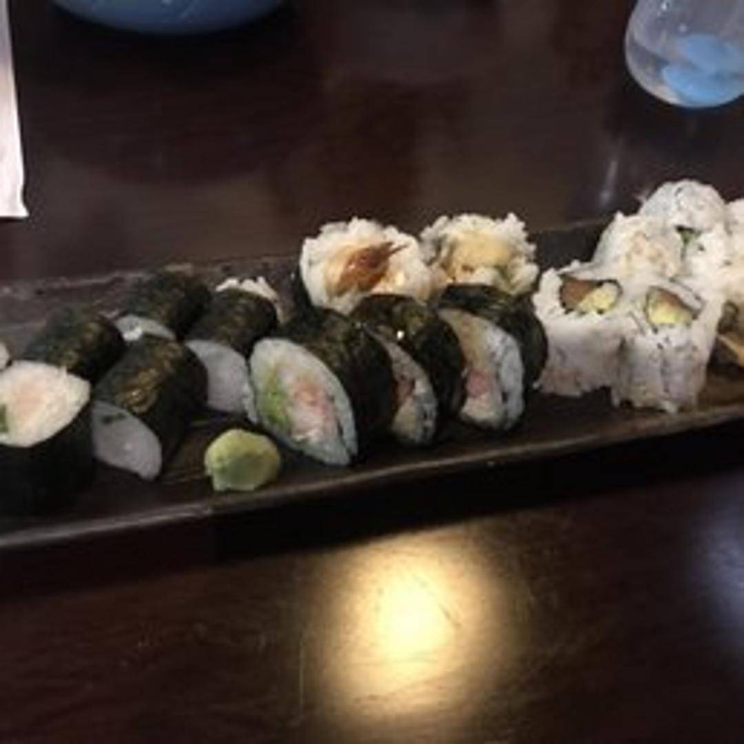 A classic sushi roll featuring cream cheese, smoked salmon, and avocado, wrapped in nori seaweed and sushi rice.