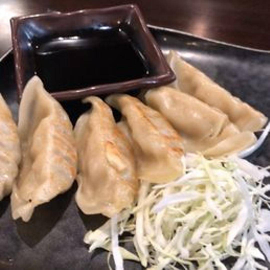 Pan-fried or steamed Japanese dumplings filled with a savory mixture of ground meat (typically pork), vegetables (cabbage, garlic chives, ginger), and seasonings. Served with a dipping sauce, often a blend of soy sauce, rice vinegar, and chili oil. Available in several options: pork, vegetable, shrimp or chicken.