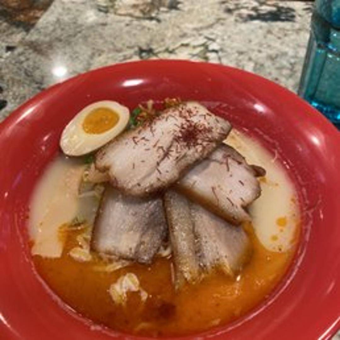 A fiery twist on the classic Tonkotsu Ramen. Creamy pork bone broth is infused with a blend of chili peppers and spices for a satisfying kick. Topped with chashu pork, marinated egg, and other ramen essentials, plus a generous helping of spicy chili oil.