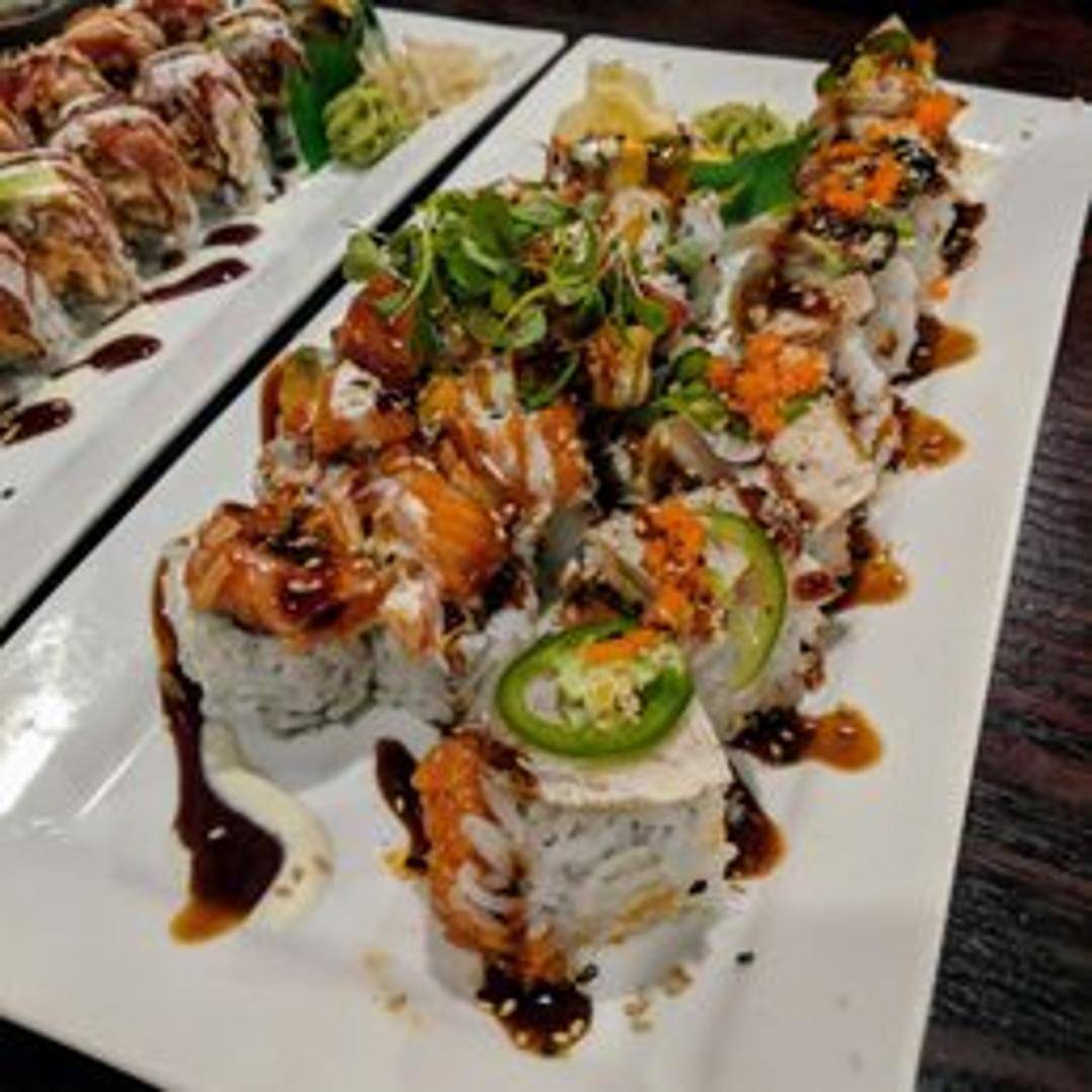 A dynamic sushi roll filled with generous cuts of fresh, high-quality sashimi-grade fish, subtly mixed with a tantalizing spicy sauce and crisp vegetables, offering a rich texture and a delightful kick in every bite.