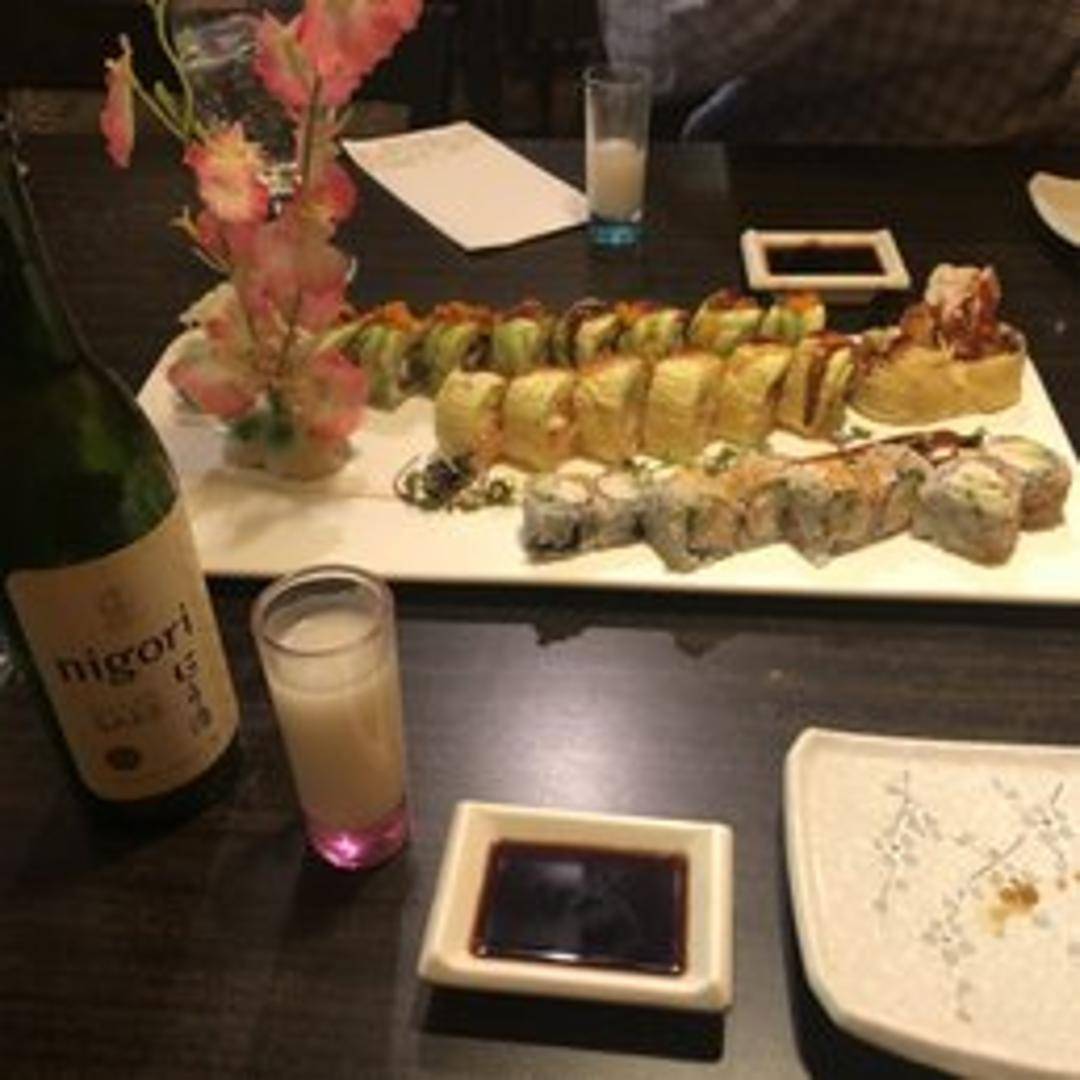 Shrimp tempura and cucumber inside, topped with avocado and eel sauce.