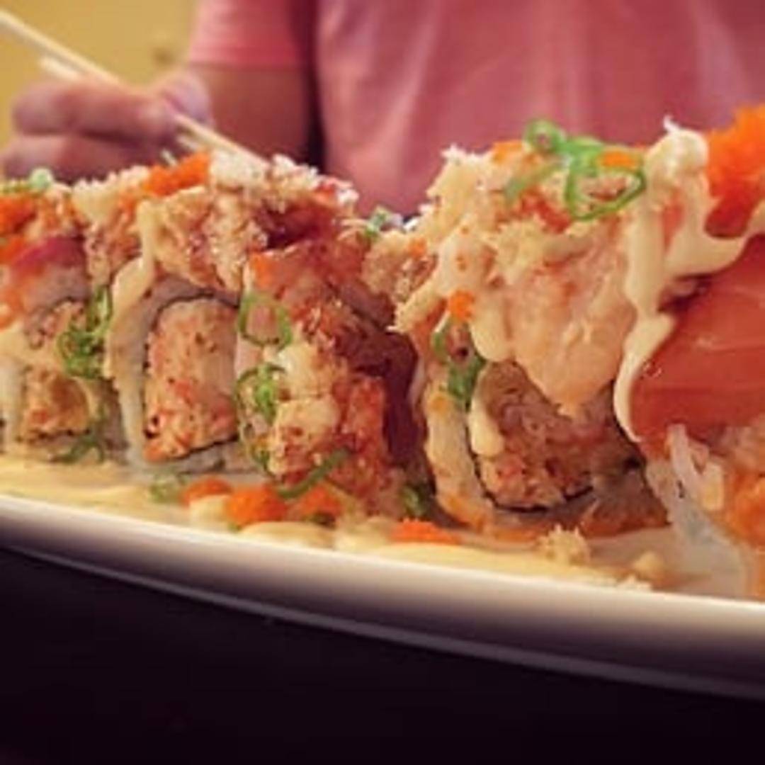 A sushi roll with a sweet and savory flavor profile. Ingredients typically include shrimp tempura, crab mix, avocado, and cucumber. It is topped with a honey-based sauce or glaze to provide a sweet finish.