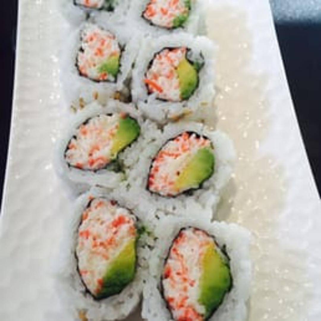 Avocado, cucumber, and imitation crab meat rolled in sushi rice and seaweed.