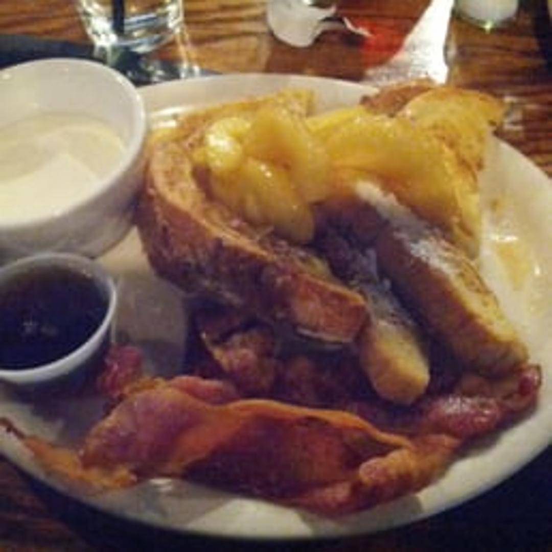 Thick slices of challah bread dipped in a rich custard batter and grilled to a golden perfection. Dusted with powdered sugar and served with maple syrup and your choice of bacon or sausage.