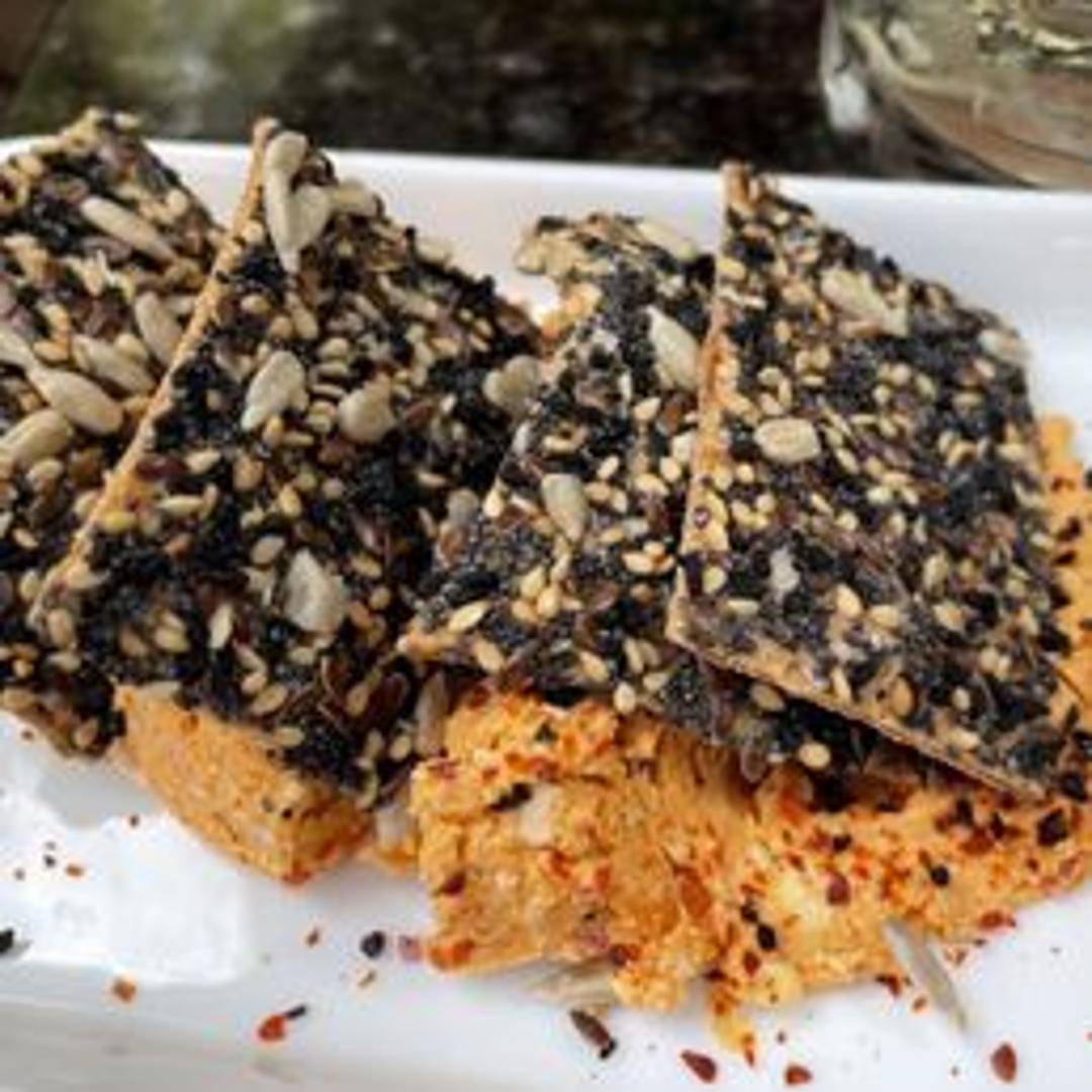 Creamy, tangy whipped feta cheese dip. Served with a drizzle of olive oil, a sprinkle of herbs, and warm pita bread for dipping. A balance of salty and savory flavors with a light, airy texture.