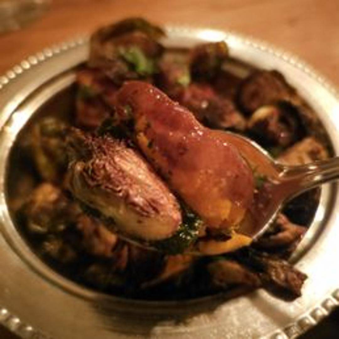 A layered casserole featuring eggplant, spiced meat (typically lamb or beef), and a creamy béchamel sauce, baked until golden brown and bubbly.