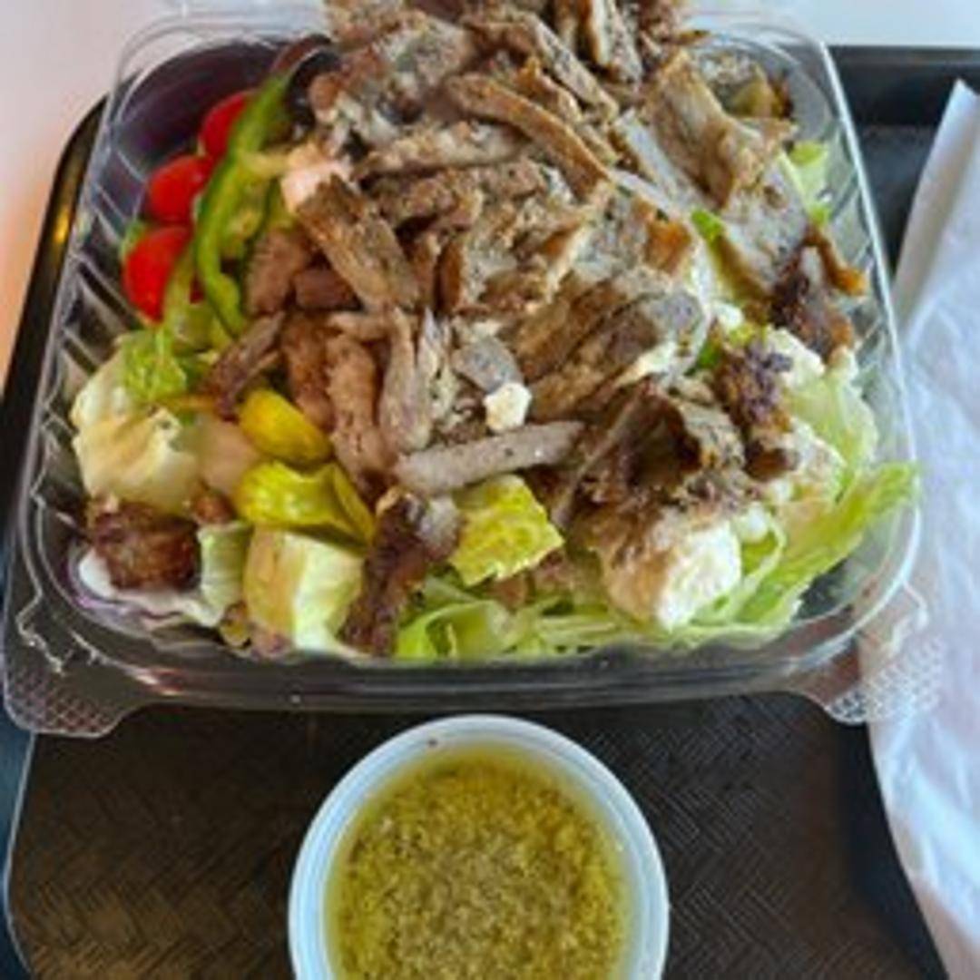 Freshly chopped tomatoes, cucumbers, onions, green peppers, Kalamata olives, and feta cheese, tossed in a Greek vinaigrette dressing.