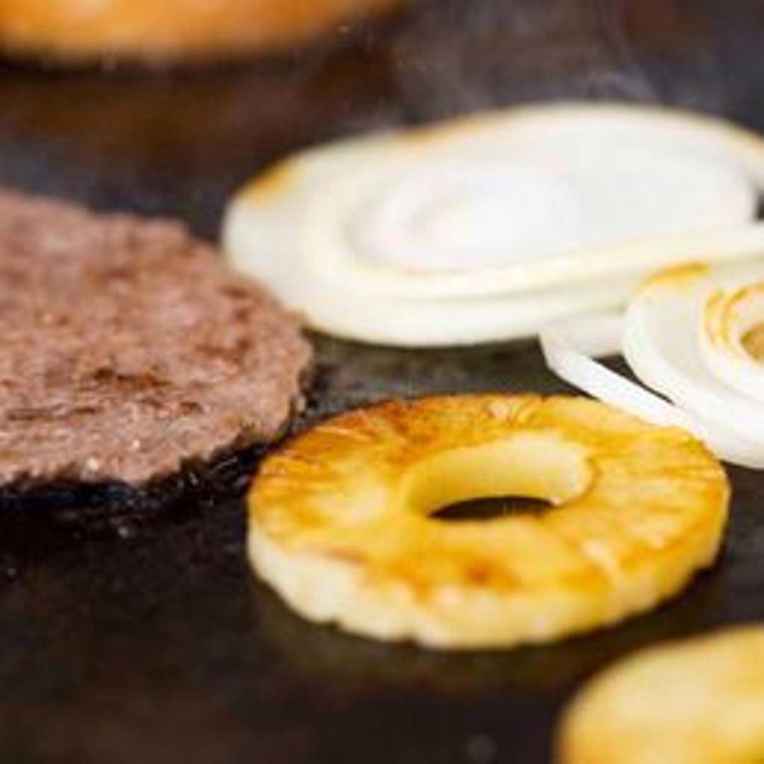 Juicy beef patty topped with a sweet and tangy grilled pineapple slice, crisp lettuce, tomato, onion, and your choice of cheese on a toasted bun.