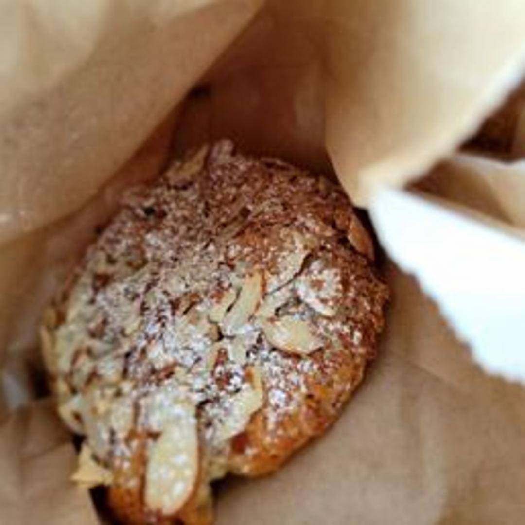 A flaky, buttery croissant filled with a decadent chocolate almond paste and topped with sliced almonds and a dusting of powdered sugar. Features layers of crisp, golden-brown pastry.