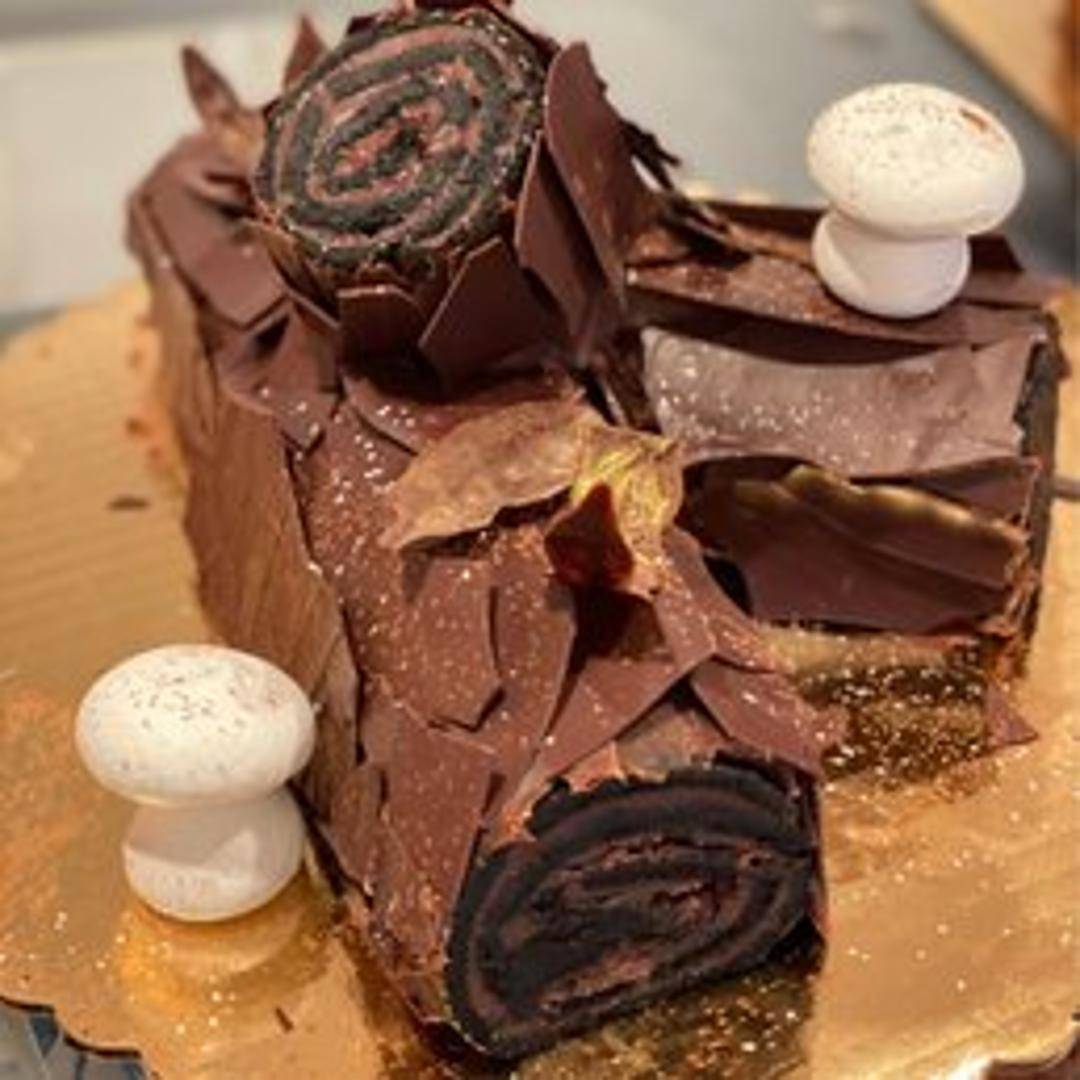 A decadent dessert featuring a light and airy chocolate sponge cake, swirled with a luscious raspberry filling. Finished with a dusting of cocoa powder and often garnished with fresh raspberries.