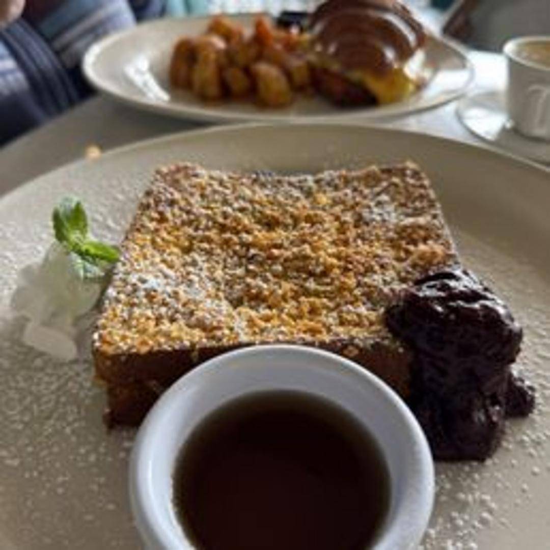 French toast with a crunchy exterior and a soft, flavorful interior filling. Expect a satisfying combination of textures and sweetness.
