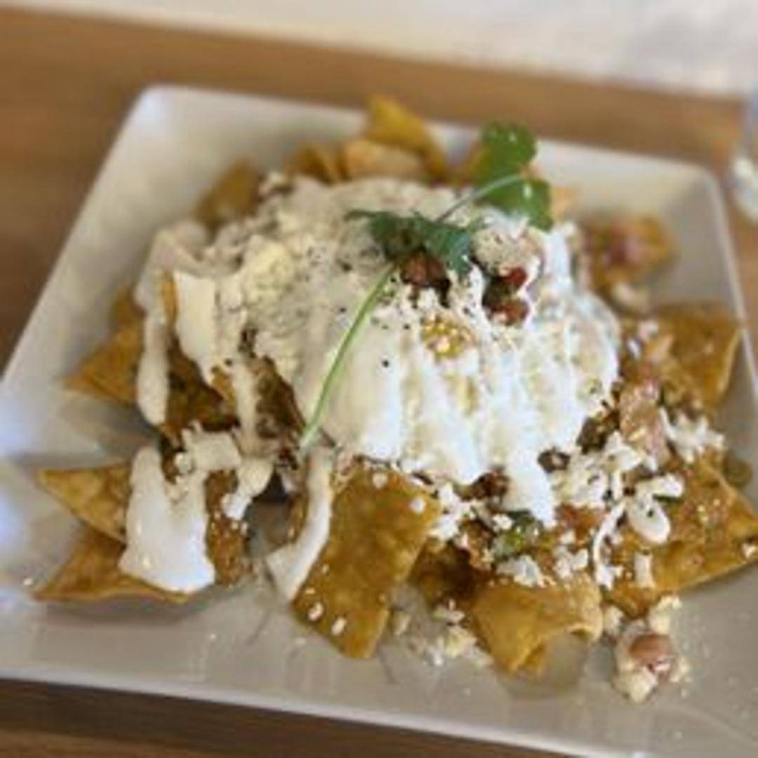 Crispy tortilla chips simmered in a vibrant salsa, topped with cheese, onions, and a fried egg. Available in red or green salsa.