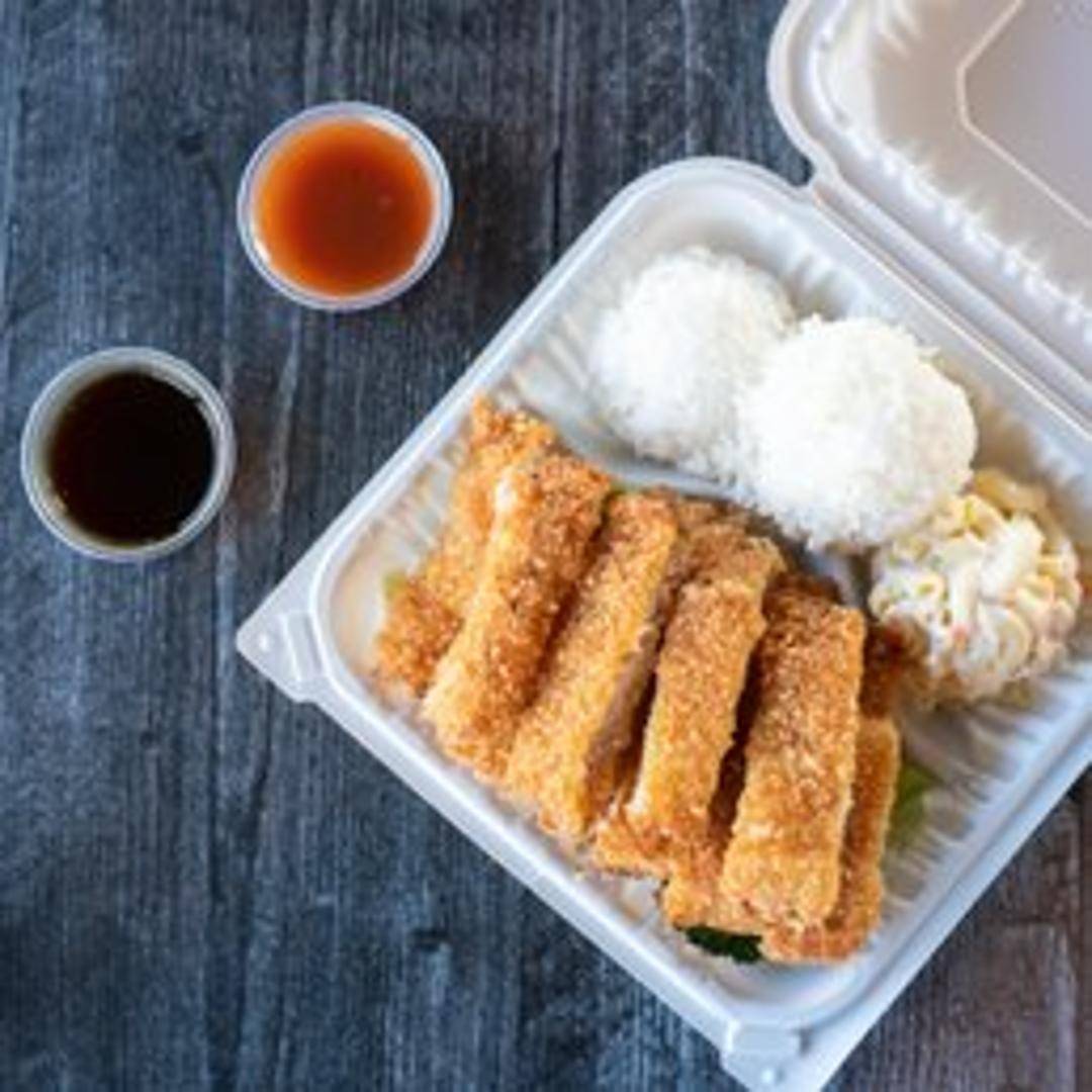 Crispy breaded chicken cutlet, deep-fried to a golden brown. Served with katsu sauce, steamed rice, and a choice of macaroni salad or steamed vegetables.
