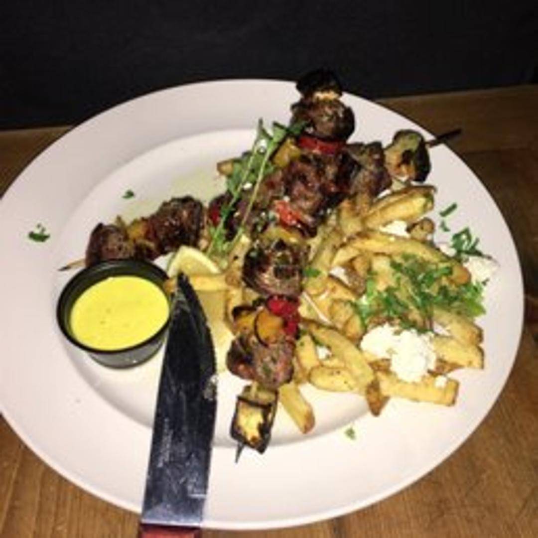Grilled skewers of marinated lamb, tender and bursting with authentic Greek flavors. Served with a side of pita bread.