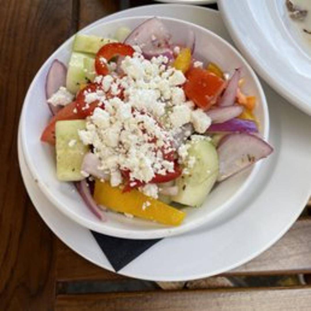 A classic Greek salad featuring crisp romaine lettuce, juicy tomatoes, cucumbers, red onion, Kalamata olives, and creamy feta cheese. Dressed with a traditional Greek vinaigrette made with olive oil, red wine vinegar, oregano, and a touch of lemon. A refreshing and flavorful vegetarian option.