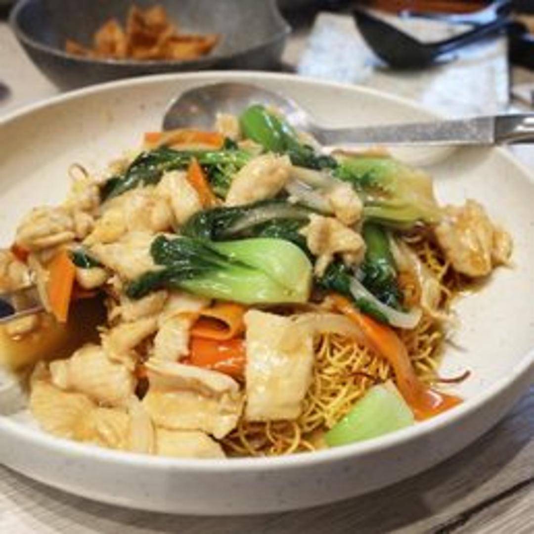 Savor the unique texture of our Double Pan-fried Noodles. Crispy, golden-brown egg noodles form a delightful base, pan-fried on both sides for maximum crunch. This textural masterpiece is then generously topped with your choice of protein and a medley of fresh, vibrant vegetables, all in a savory, thick brown sauce.