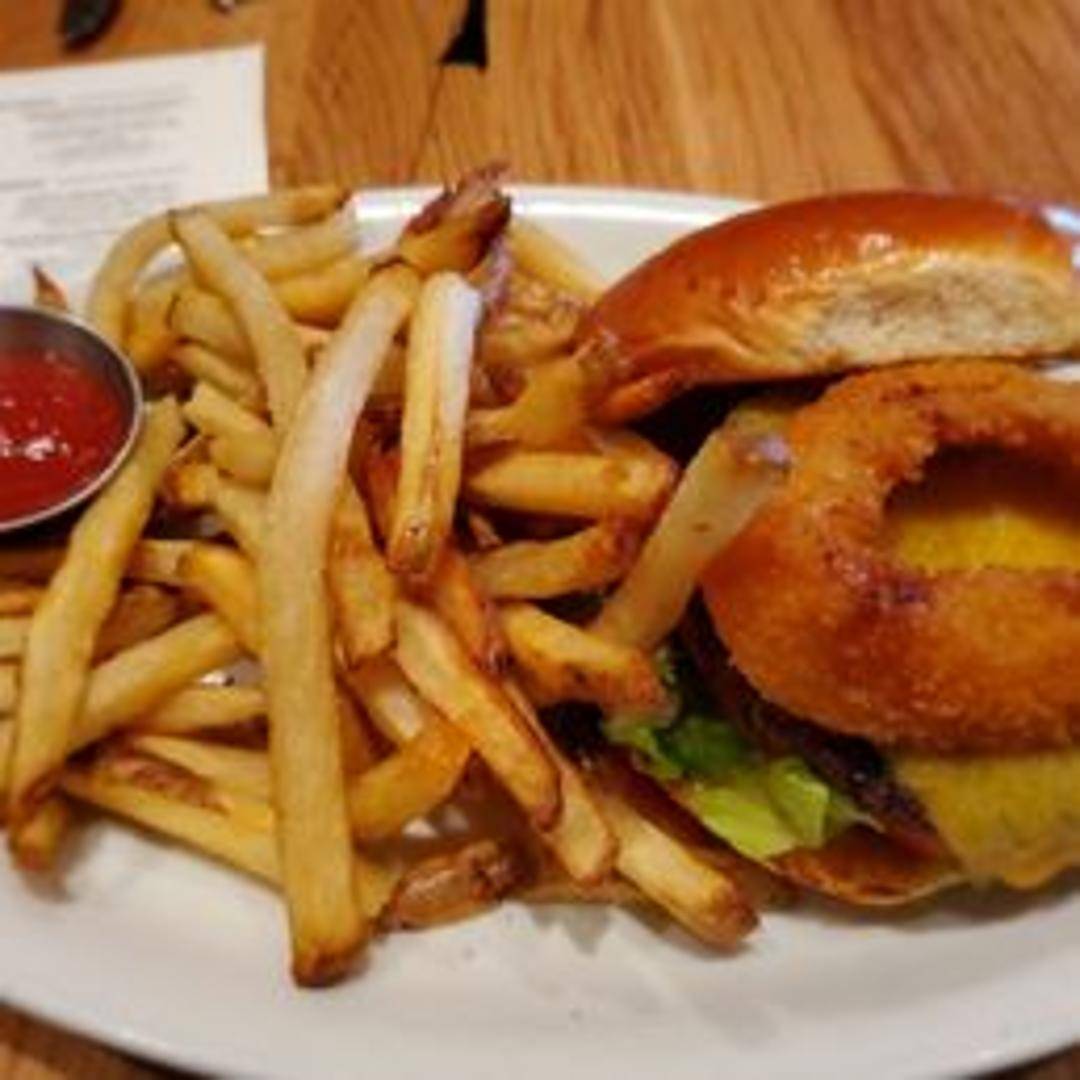 Our signature burger, the Open Road Burger features a juicy, flame-grilled beef patty cooked to your preference, topped with fresh crisp lettuce, ripe tomatoes, red onions, and pickles. Finished with a slice of sharp cheddar cheese and our unique house sauce, all nestled in a toasted brioche bun, delivering a hearty and flavorful experience.