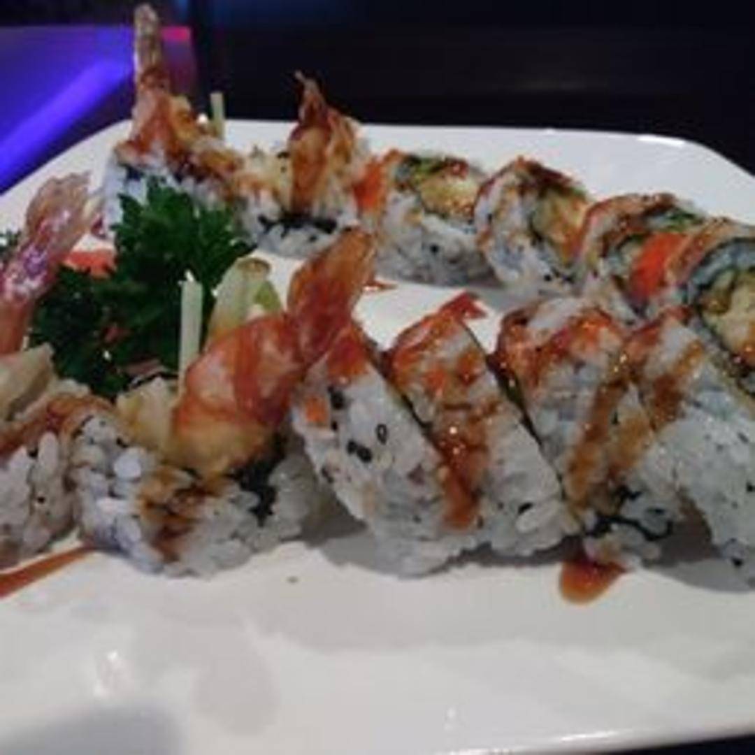 A sushi roll featuring crispy shrimp tempura as its core ingredient. Typically includes rice, nori seaweed, and often cucumber, avocado, or other complementary fillings. May be served with a dipping sauce, such as tempura sauce or sweet chili sauce.