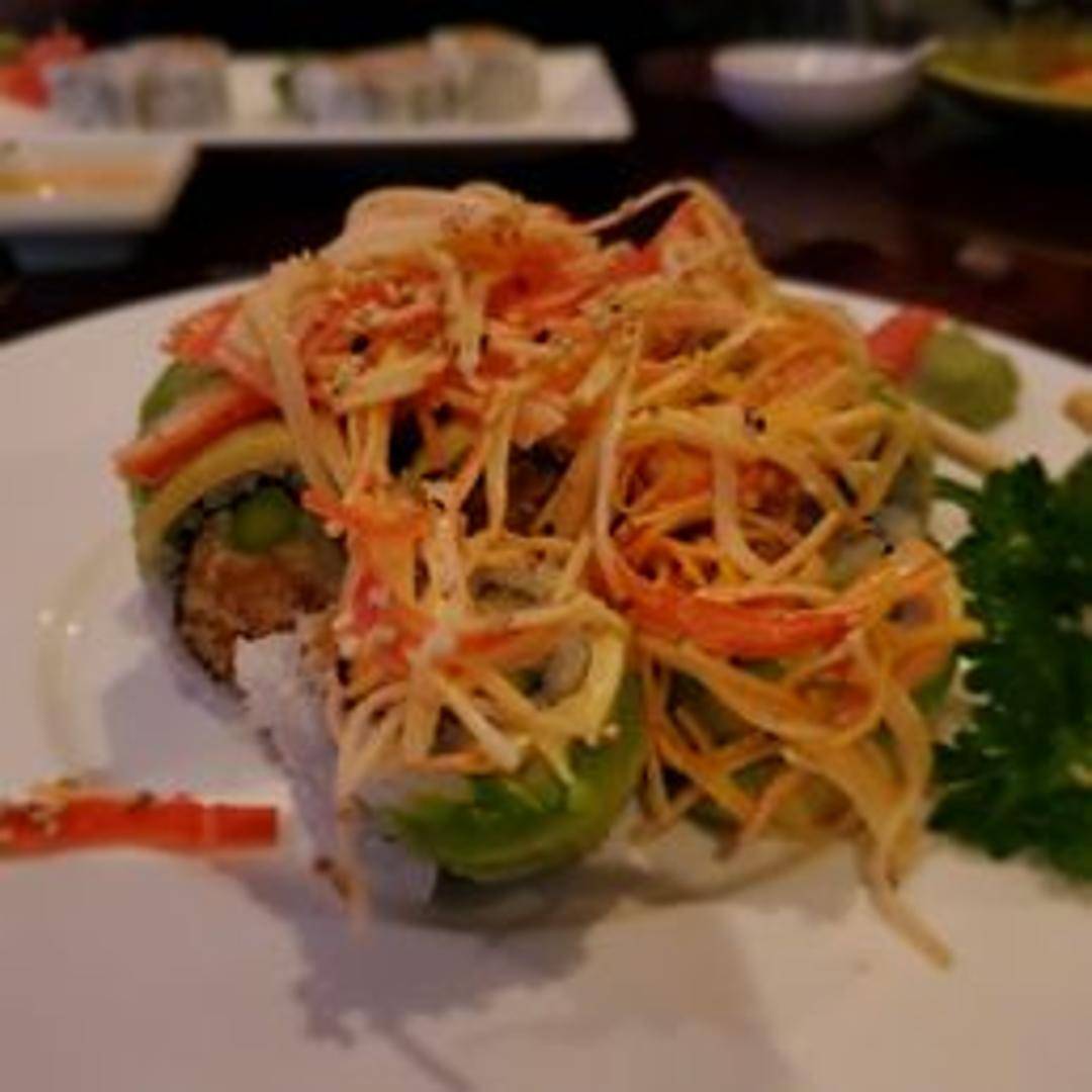 A delectable sushi roll featuring a combination of fresh ingredients and flavorful sauces. This roll typically includes shrimp tempura, cream cheese, and avocado rolled in sushi rice and nori seaweed. It's often topped with a sweet and savory eel sauce and spicy mayonnaise, creating a balance of textures and tastes. Some variations may also include sesame seeds or other garnishes for added flavor and visual appeal.