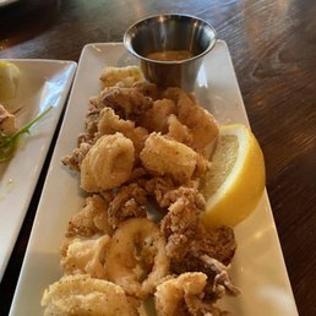 Tender rings and sometimes tentacles of calamari (squid), expertly coated in a light, seasoned batter and deep-fried until perfectly golden brown and crispy. Typically served hot with a side of zesty marinara sauce or a creamy lemon-garlic aioli for dipping.