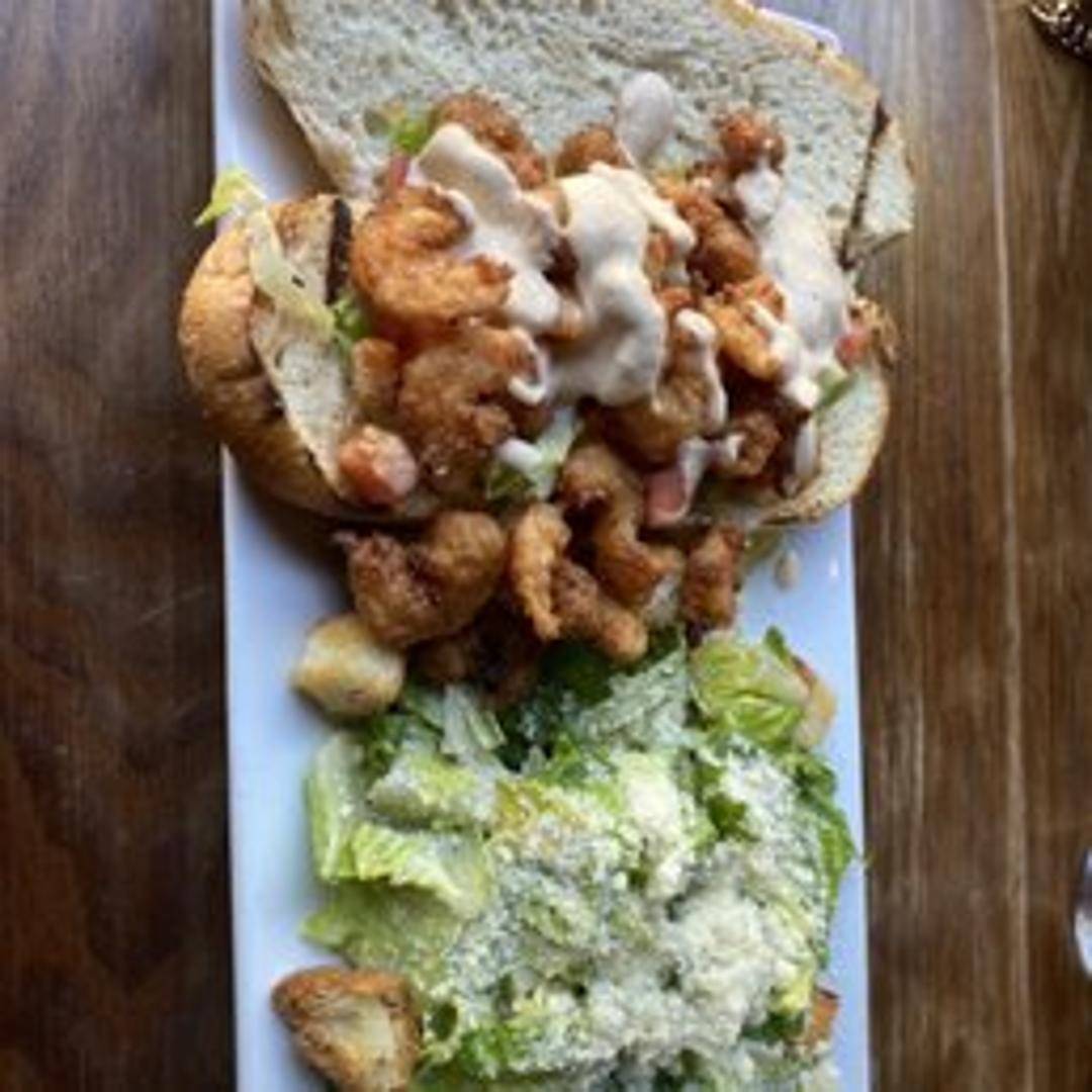 A classic New Orleans-inspired sandwich featuring crispy, golden-fried shrimp piled high on a crusty, fresh French bread loaf. Traditionally dressed with crisp lettuce, ripe tomatoes, tangy pickles, and a creamy remoulade or mayonnaise for an authentic taste of the South.