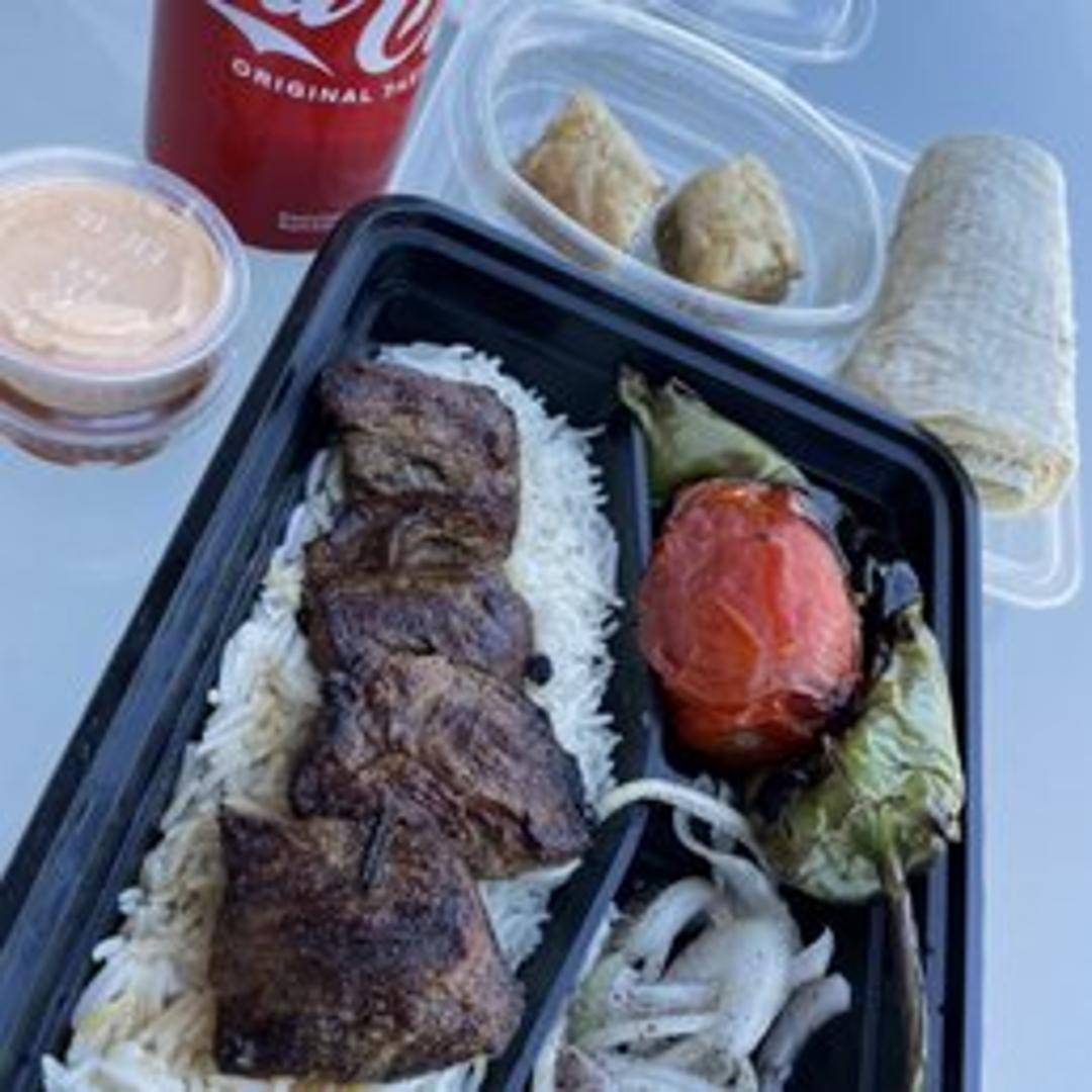 Juicy, marinated steak kabobs grilled to perfection and served on a bed of fluffy basmati rice with your choice of two sides: grilled vegetables, hummus, salad, or baba ghanoush. A hearty and satisfying meal.