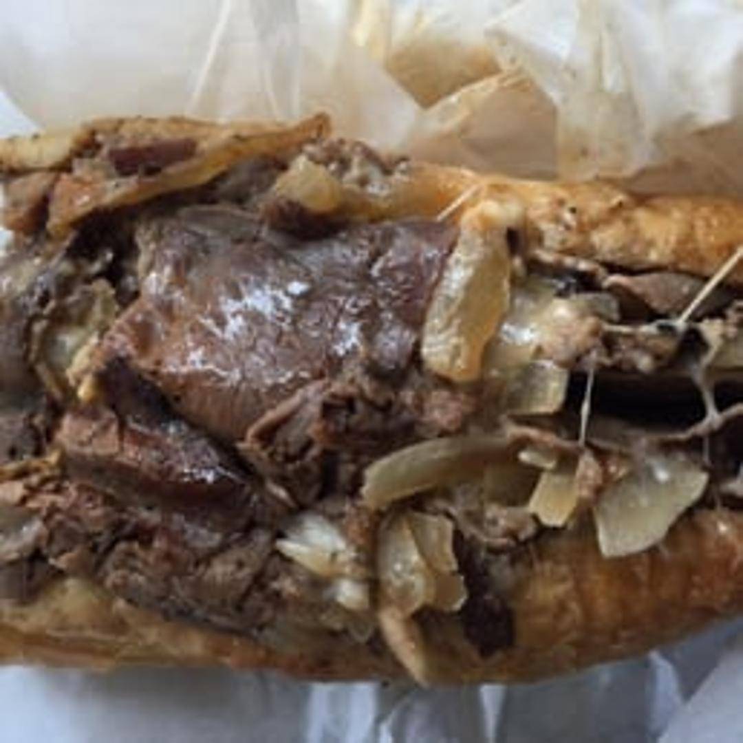 Thinly sliced steak grilled with onions and peppers, topped with melted cheese on a toasted hoagie roll.