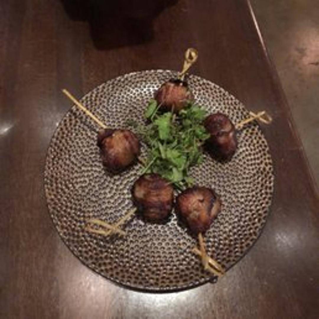 A delectable appetizer where sweet Medjool dates, often stuffed with creamy goat cheese or a delicate nut, are perfectly enveloped in crispy, savory bacon and then baked to a golden finish, typically drizzled with a balsamic glaze for a perfect balance of flavors.